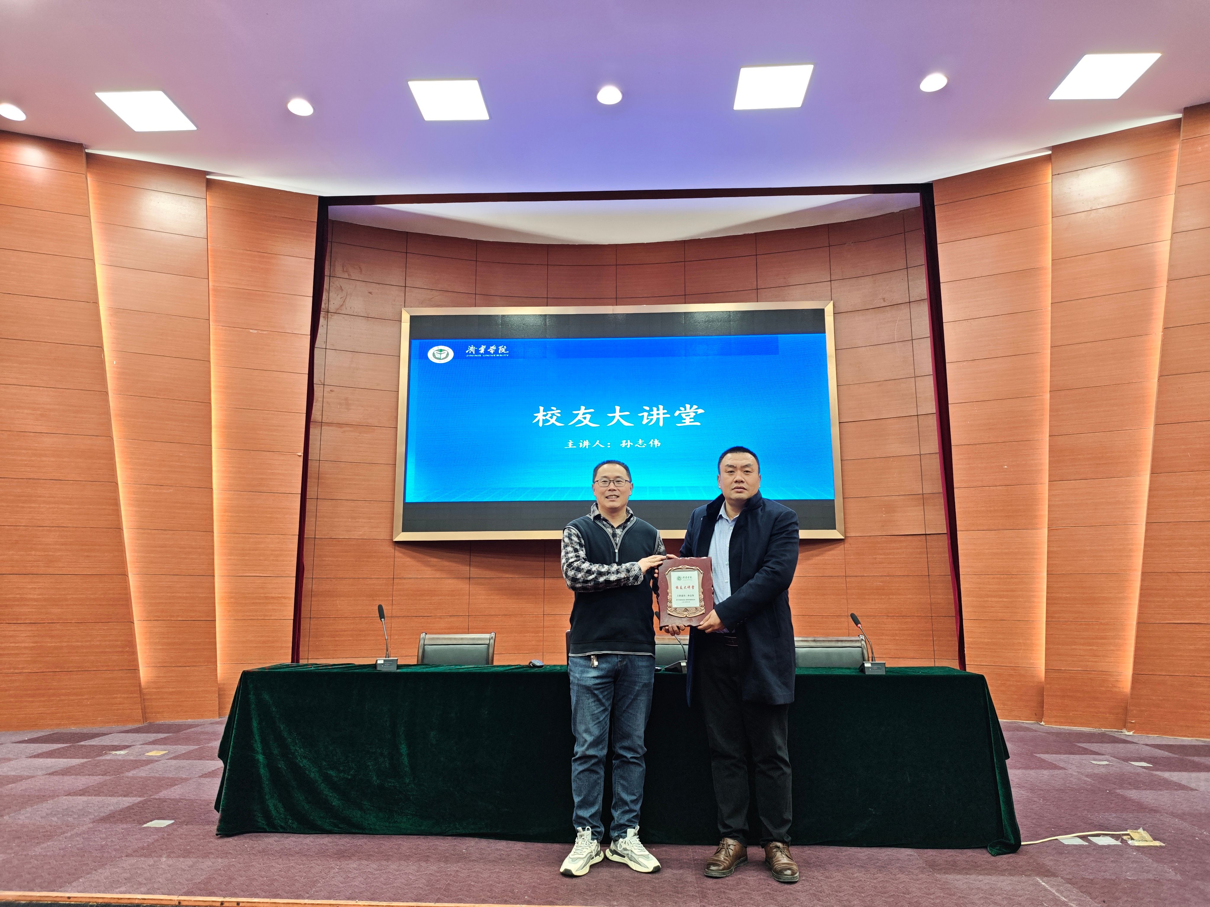 最后,刘涛为孙志伟颁赠了“校友大讲堂”纪念铭牌。