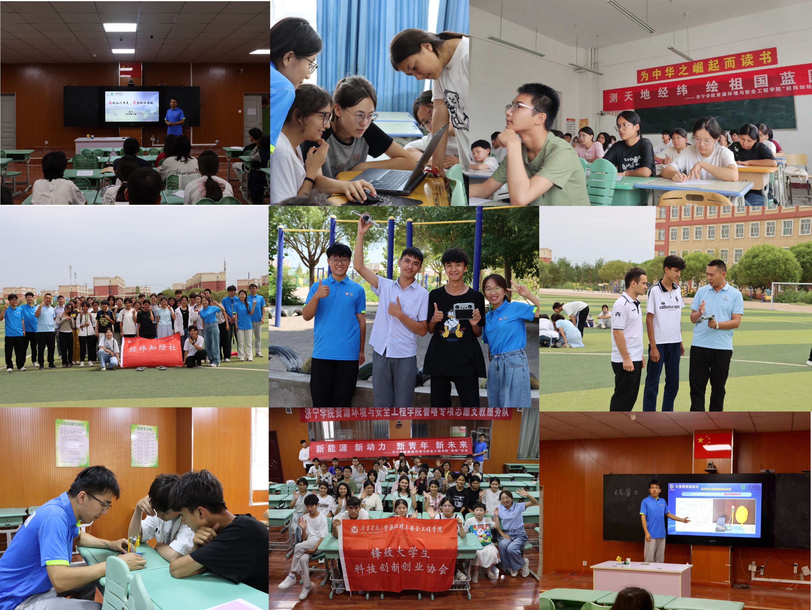 以科技之光点燃探索热情。测绘工程专业师生通过遥感课堂带领同学们解读卫星影像中昆仑雪水滋养的绿洲变迁,同学们第一次从太空视角读懂家园;无人机腾空而起,完成的孔子雕塑三维建模画面引发阵阵惊呼,同学们亲手丈量的不仅是校园地标,更有对国土认知的立体升华。新能源科学与工程专业学子带来“风光互补”科学小发明,将可持续发展观直观展现。这些融合专业的科技火种,终将燎原成驱动边疆发展的青春动能。