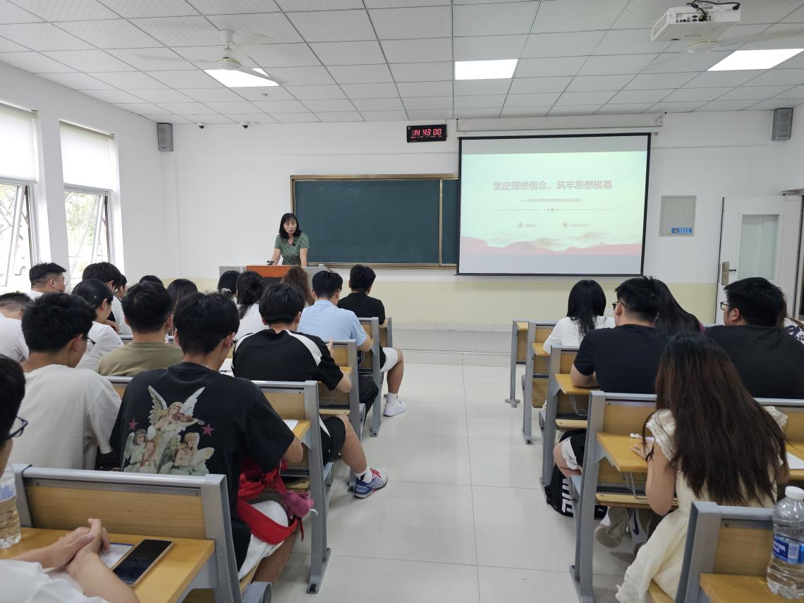 开班仪式结束后,唐秋晶为学院全体发展对象和学生党员作了题为《坚定理想信念,筑牢思想根基》的专题党课。